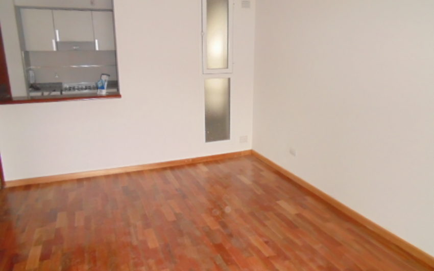 Living comedor con cocina semi integrada con espacio para lavarropa bajo mesada, 1 dormitorio con placard, baño y balcón.