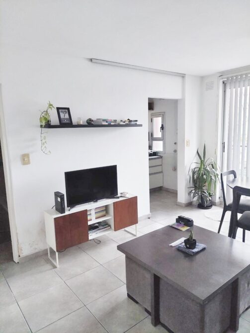 DESCRIPCION: Ingreso a living comedor de 4.63 x 3.75 con salida a balcón, cocina semi integrada, baño completo con bañera, un dormitorio con placard.