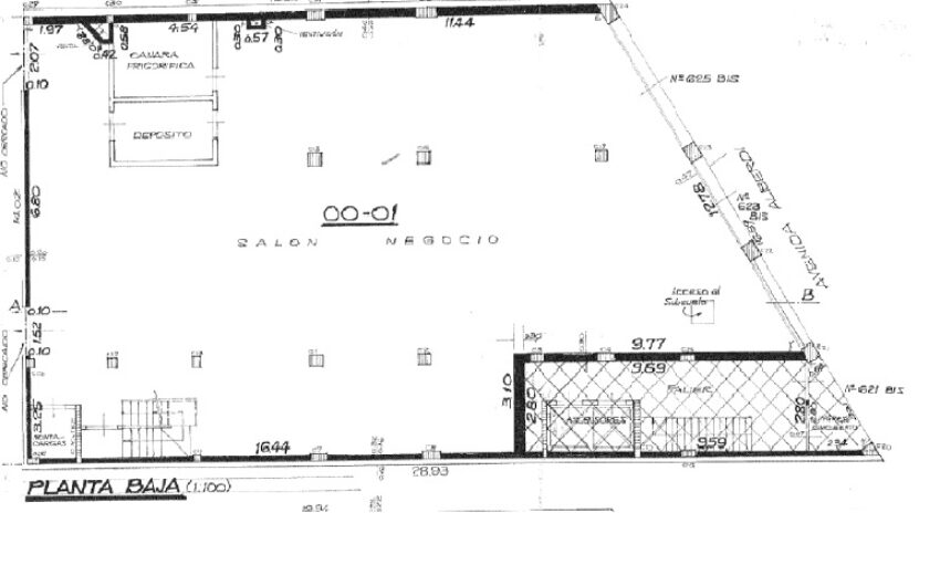 Nave de dos plantas de 14 x 42 por planta, sector de vestuarios y montacargas, actualmente sectorizado con hornos, dispone de distintos subsuelos a los que se puede acceder por escalera o montacarga, igualmente para la planta alta.