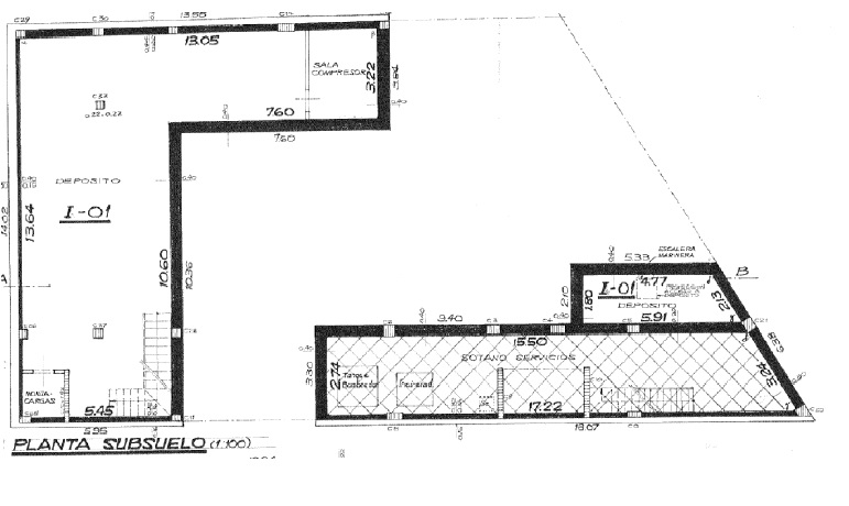 Nave de dos plantas de 14 x 42 por planta, sector de vestuarios y montacargas, actualmente sectorizado con hornos, dispone de distintos subsuelos a los que se puede acceder por escalera o montacarga, igualmente para la planta alta.