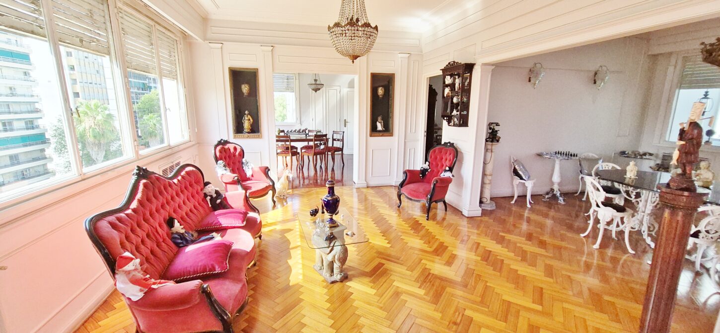 DESCRIPCION: Ingreso principal por palier exclusivo, recepción con amplios ventanales que miran al Boulevard, Living comedor sectorizado de 6 x 8 con salida a galería, escritorio o 4° dormitorio, gran dormitorio principal con salida al balcón con vista al centro de manzana, amplios placares, dos baños completos (principal con hidromasaje y el otro con ducha de pie), dos dormitorios que se acceden por el mismo corredor o por la galería cubierta. Cocina comedor, lavadero independiente y dependencias de servicio.