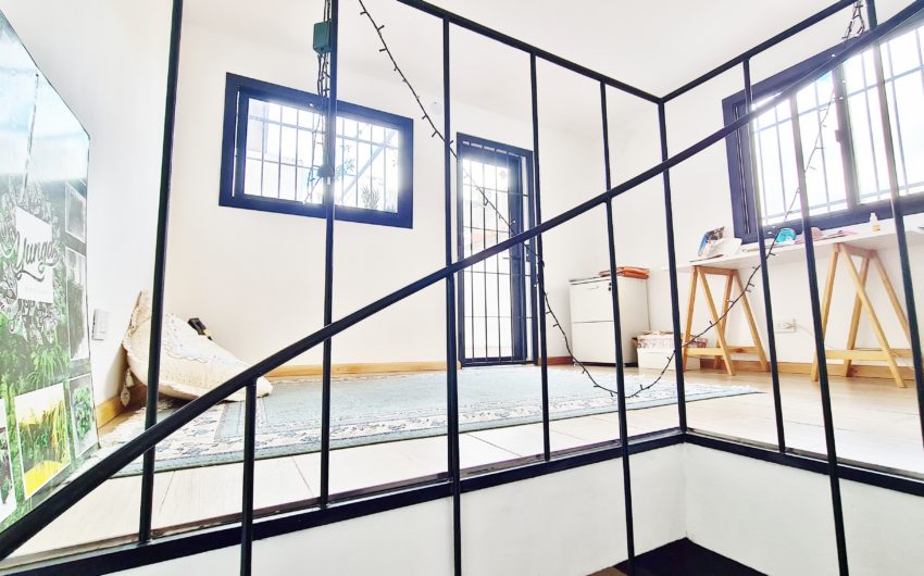 Descripción: Ingreso a patio distribuidor desde donde se puede acceder a la cocina y a un amplio living comedor, dormitorio con baño en suite, escalera caracol que lleva a un escritorio o comodín, con salida a la terraza, que a su vez se puede acceder desde el mismo patio de ingreso.