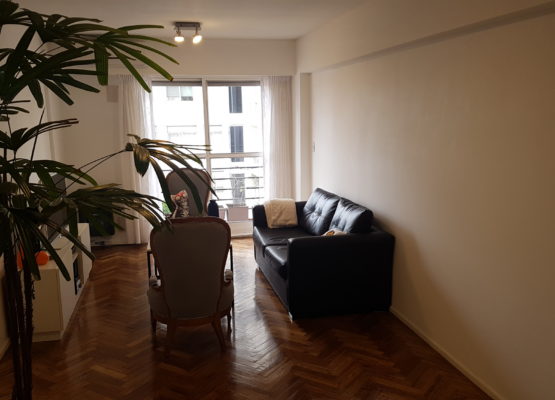 Living-comedor de 6 x 3, cocina comedor con lavadero incorporado y baño de servicio, 2 dormitorios con placares y baño principal. Balcón.