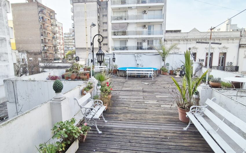 DESCRIPCIÓN: Ingreso por escalera, hall de recepción, living comedor sectorizado de 6 x 8 con balcón a la calle, dormitorio principal, baño completo con bañera, segundo dormitorio (ambos con ingreso directo al baño), escritorio, cocina comedor, segundo baño, tercer dormitorio, escalera que lleva a entre piso, donde encontramos otro baño con ducha de pie y dos dormitorios. En terraza, lavadero independiente, galería de 6 x 2 con parrilla y amplia terraza descubierta con pileta.