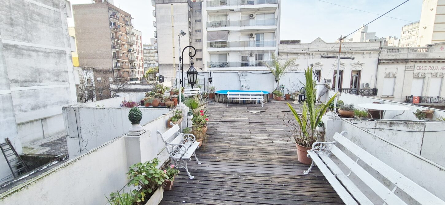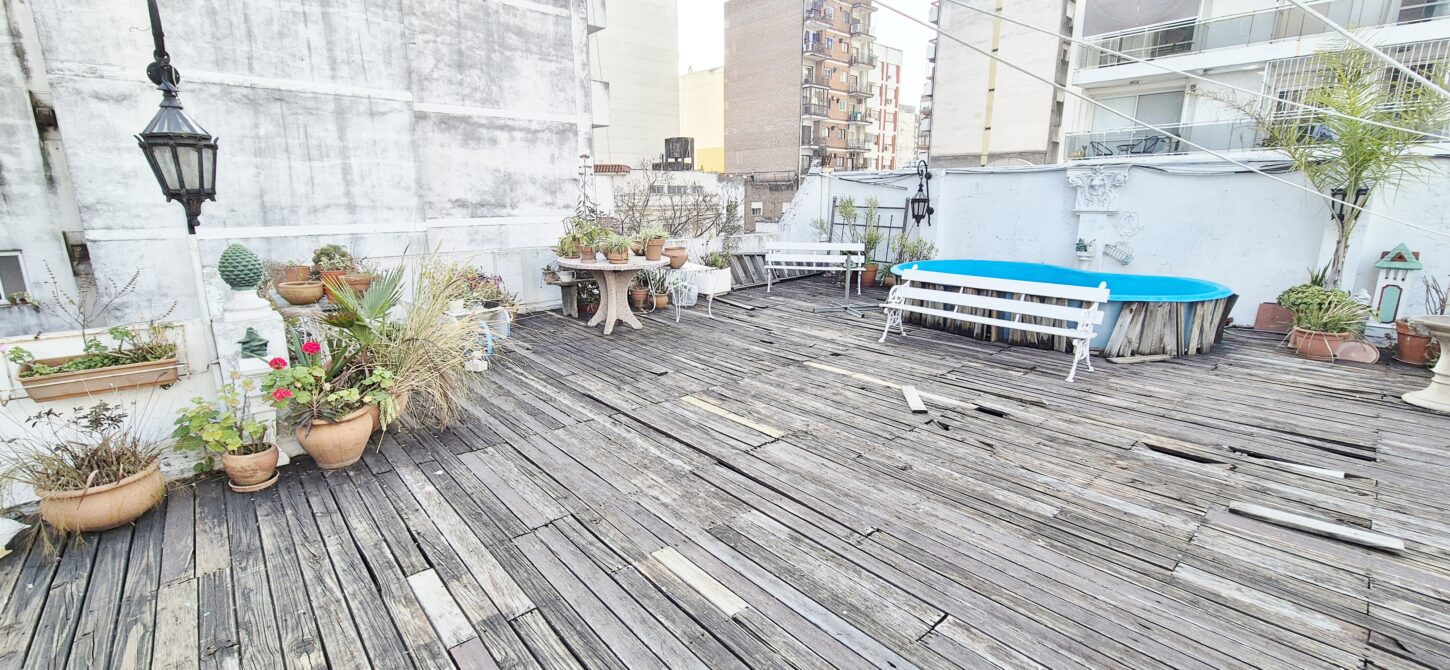 DESCRIPCIÓN: Ingreso por escalera, hall de recepción, living comedor sectorizado de 6 x 8 con balcón a la calle, dormitorio principal, baño completo con bañera, segundo dormitorio (ambos con ingreso directo al baño), escritorio, cocina comedor, segundo baño, tercer dormitorio, escalera que lleva a entre piso, donde encontramos otro baño con ducha de pie y dos dormitorios. En terraza, lavadero independiente, galería de 6 x 2 con parrilla y amplia terraza descubierta con pileta.