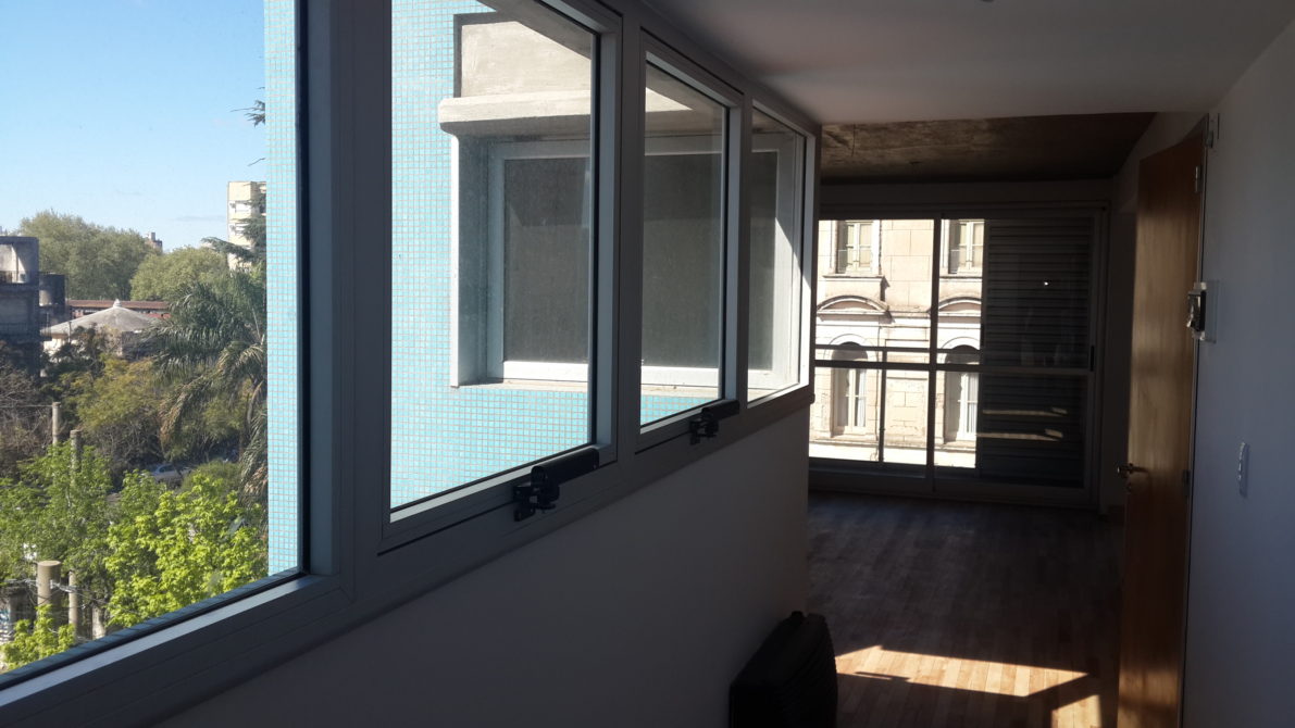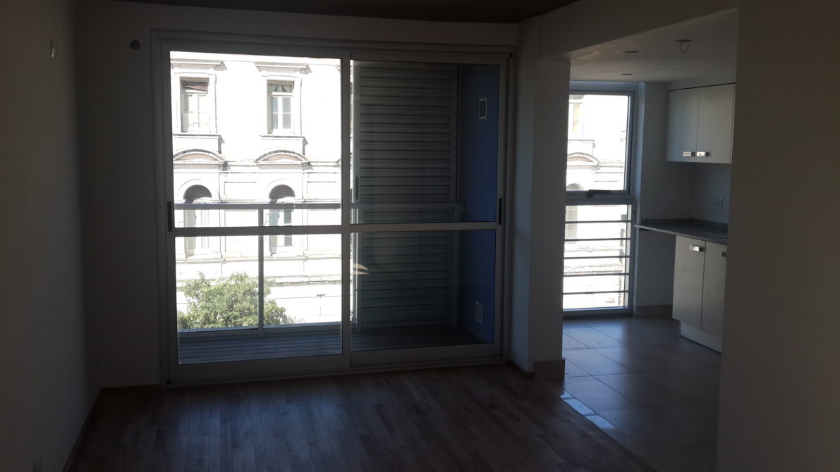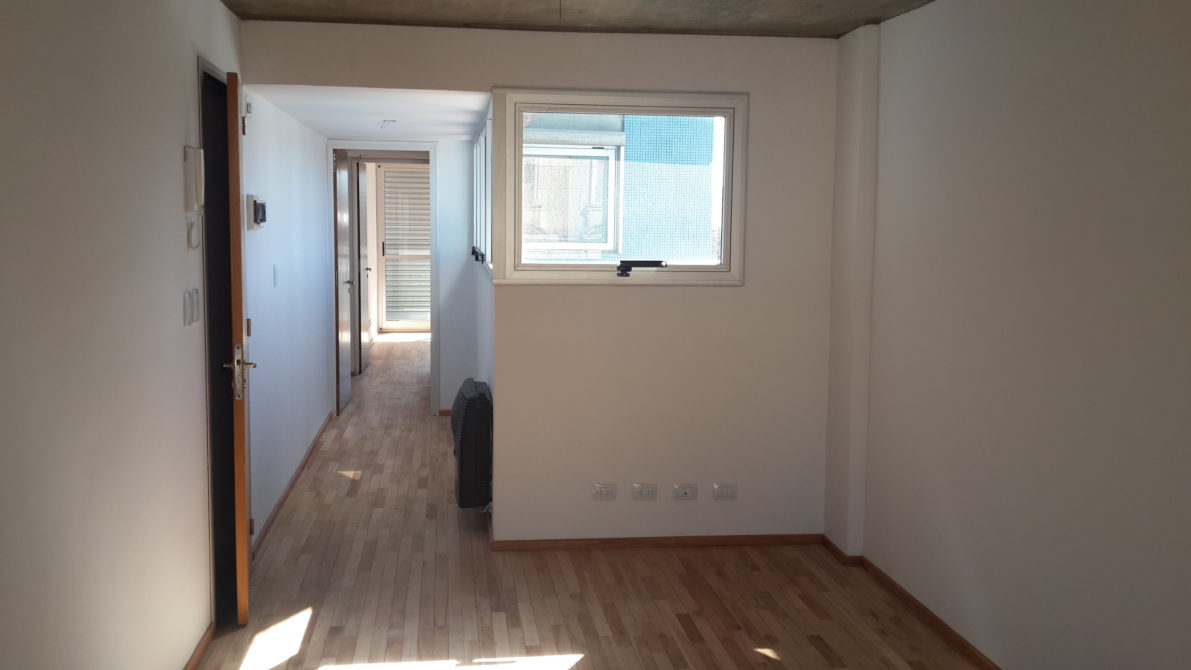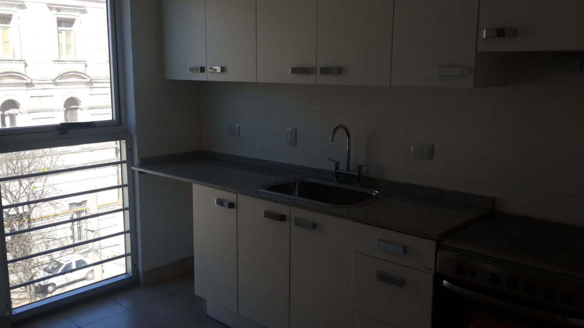 Living-comedor de 3 x 6 con cocina semi-integrada con espacio para lavarropa, 2 dormitorio, baño con bañera, balcón frente y contra frente. Posibilidad de Cochera.