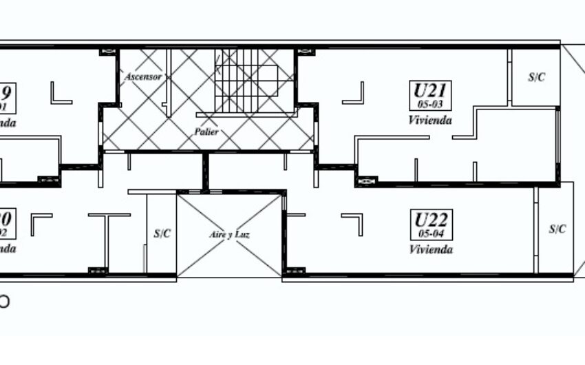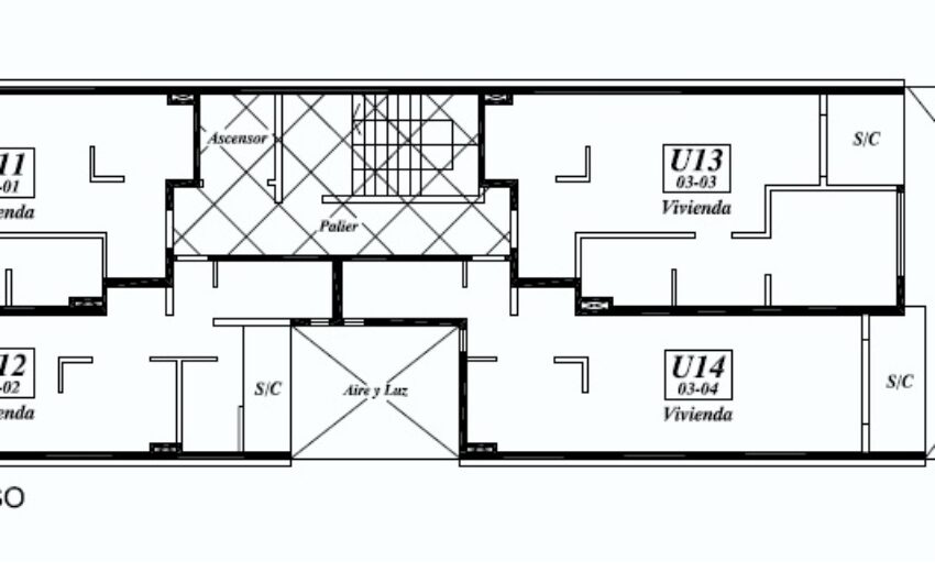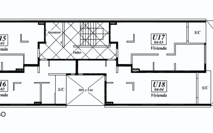 Unidades de un dormitorio y monoambiente. Cuatro unidades por piso.