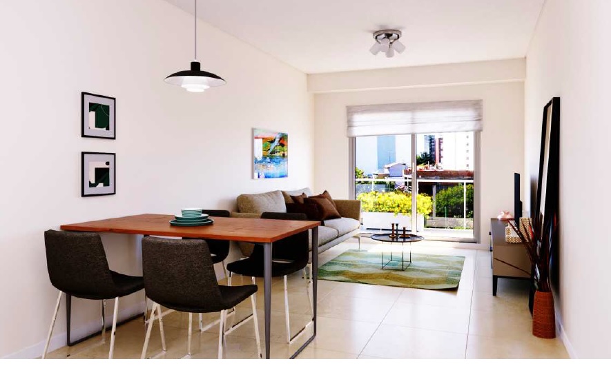 Unidades de un dormitorio y monoambiente. Cuatro unidades por piso.