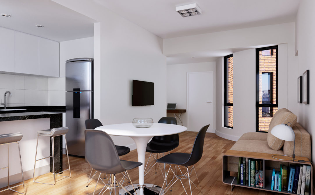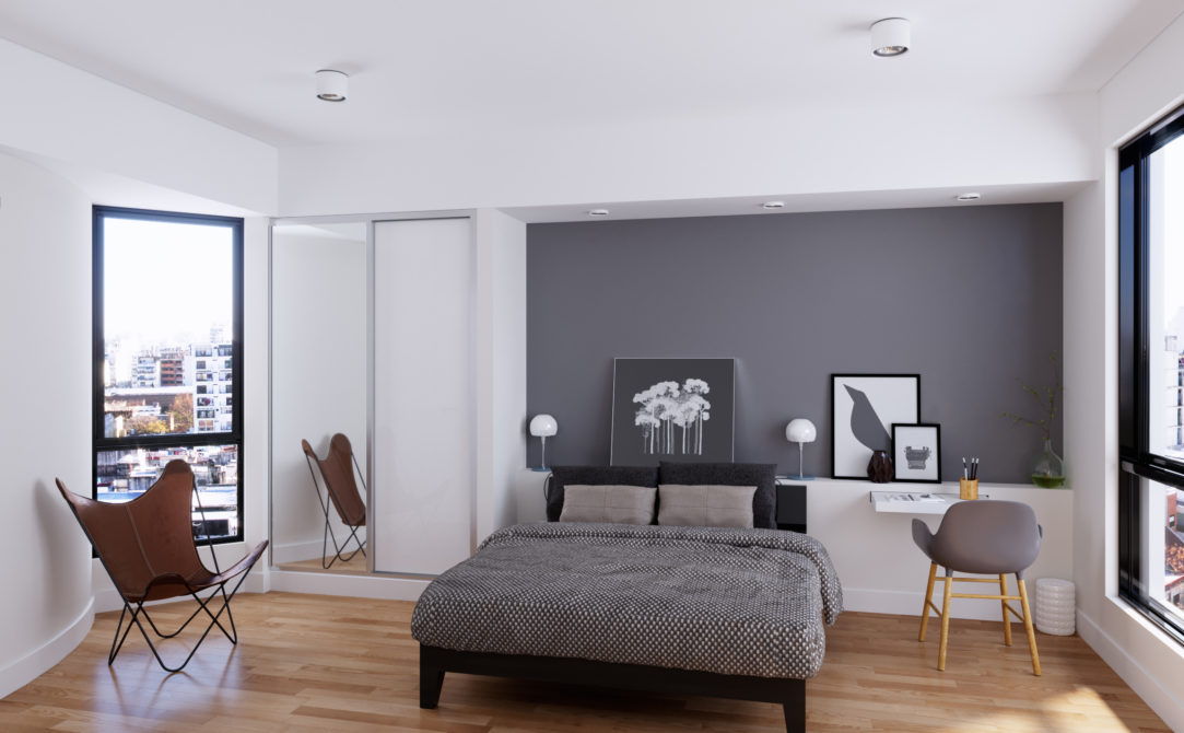 Departamento: living-comedor de 6.29 x 3.12, cocina semi integrada, 1 baño con bañera, 1 dormitorio con vestidor. Balcón.