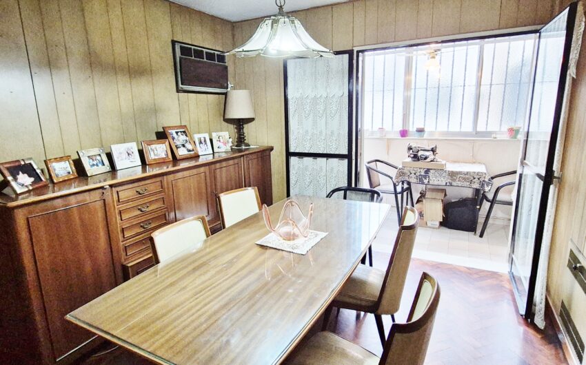 DESCRIPCIÓN: Ingreso principal a recibidor, amplio living comedor de 7 x 4.50, cocina de doble mesada, lavadero independiente, donde además se encuentra el segundo ingreso, dependencias de servicio, 3 dormitorios (actualmente 1 transformado en comedor con salida a galería cubierta) y 2 baños completos (el principal en suite).