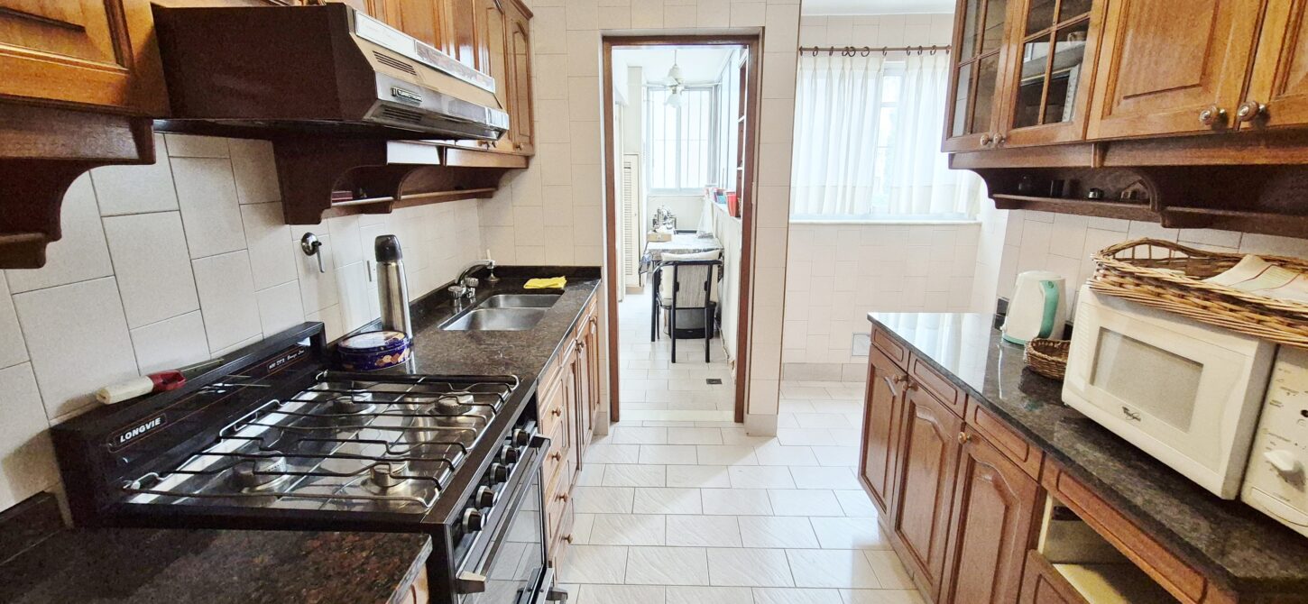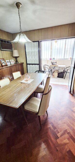 DESCRIPCIÓN: Ingreso principal a recibidor, amplio living comedor de 7 x 4.50, cocina de doble mesada, lavadero independiente, donde además se encuentra el segundo ingreso, dependencias de servicio, 3 dormitorios (actualmente 1 transformado en comedor con salida a galería cubierta) y 2 baños completos (el principal en suite).
