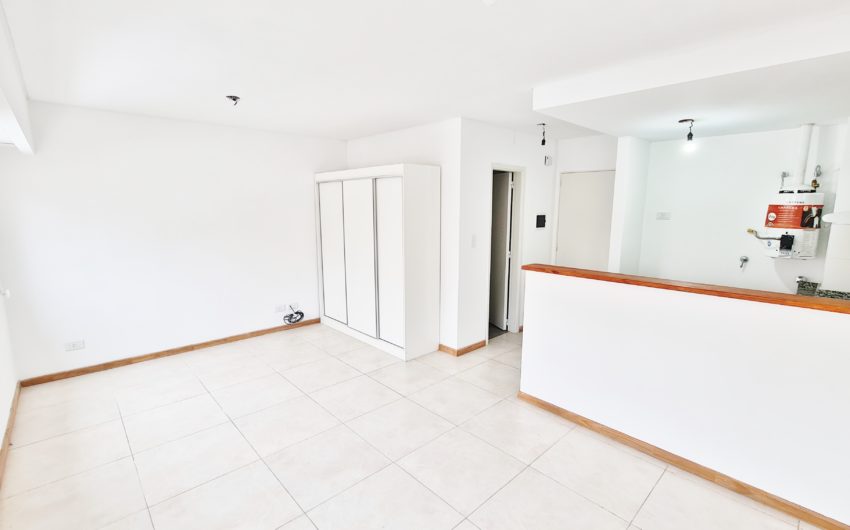 Ingreso ambiente único de 5 x 4.95 con placard y con cocina integrada, espacio para lavarropas, baño completo con bañera.