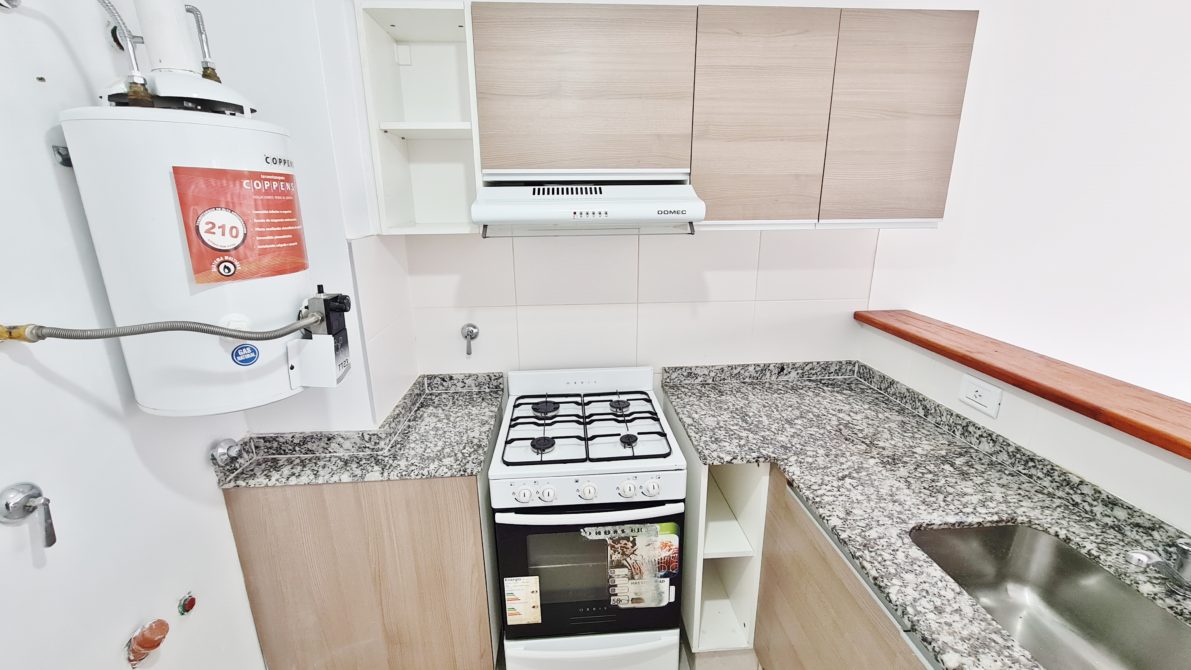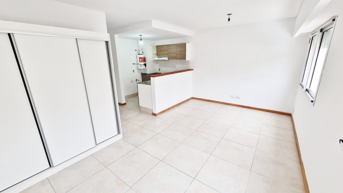 Ingreso ambiente único de 5 x 4.95 con placard y con cocina integrada, espacio para lavarropas, baño completo con bañera.
